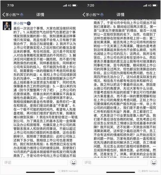 “恳求所有的媒体和朋友不要对茅侃侃下任何带有主观偏见的结论,这对他很不公平。感谢大家,让侃侃安心的走。他是身边好友心中最仗义的那个,没有之一。生活中,他永远是第一个出来帮朋友扛事的人,没有目的,不求回报;创业中,他背负了所有属于他以及完全不属于他的全部责任。身边小有成就的人很多,但在我们心中份量最重的那个哥们,茅侃侃是唯一。走好,兄弟。”