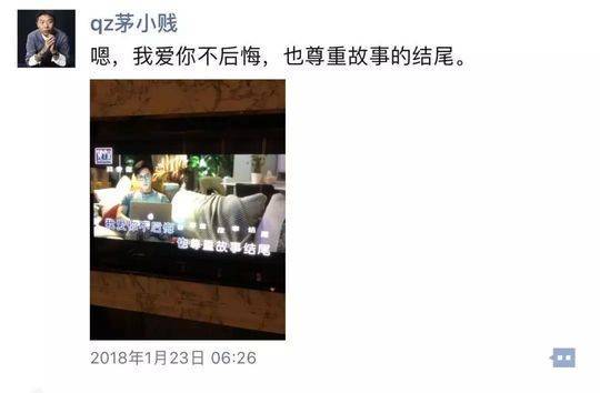 2018年1月23日,茅侃侃朋友圈发文:“我爱你不后悔,也尊重故事的结尾。”