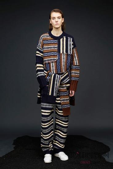 80年月鼓起的“Ugly Sweater”天然要随着复古风潮的放肆吹刮而重回人们的视线,来到各人的衣橱。Joseph的早秋系列就以毛衣单品搭配出一身套装,两种纹样的计划以水师蓝和大地色系为主,交织的条纹和拼接的计划让团体显得非常有活力。而腰间的随意一件毛衣和脚上的活动鞋真正是将Easy Chic的味道显现出来。