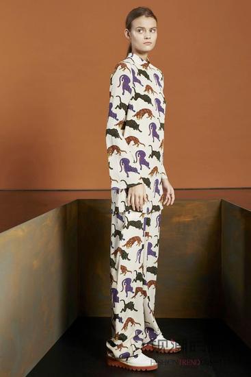 Stella McCartney的计划可以将俏皮的少女感和优雅地女人味合二为一,色彩富厚的小猫造型印花铺满白色的套装,衬衫和长裤也是宽松安宁的都市根本款,带有一些慵懒的寝衣气势派头。还是也是和外衣等单品搭配起来还是能收支Office和种种场所。