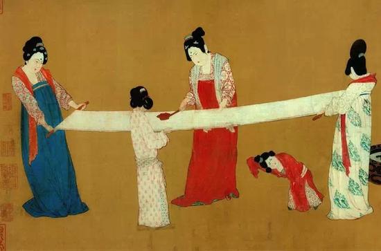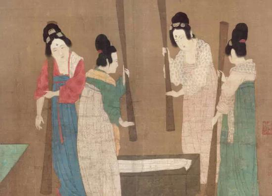 《捣练图》局部,唐朝张萱绘