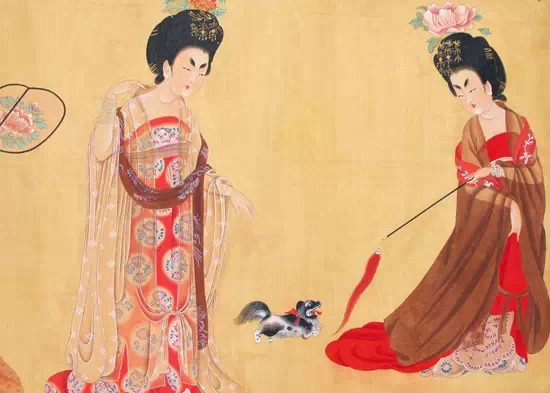 凭据唐朝画家周昉《簪花仕女图》回复再起出的衣饰图