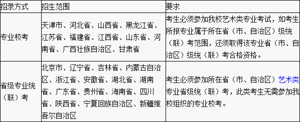 5.所报专业属考生所在省(市、自治区)组织艺术类省统(联)考范围的,必须取得该专业省联考合格,方有资格参加录取。