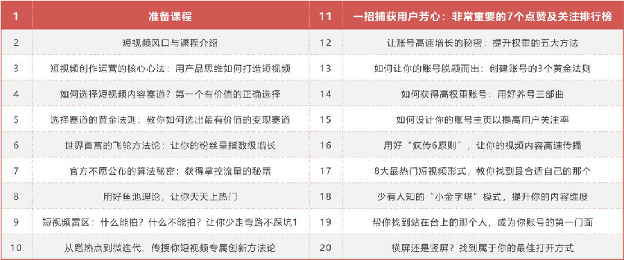 助你开始就用正确的方法、选择健康垂直赛道、持续输出优质内容,利用算法、避免雷区、巧用运营技巧让你持续爆粉、持续变现、以及驾驭多个变现方法;