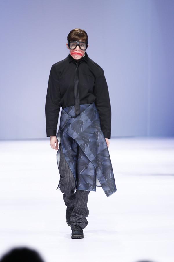 每一届北服时装周的男装秀都备受期待,3 月16 日下午3 点,1 号秀场出现了与往届一样人山人海、热浪滔天的气氛。今年的男装毕设作品融入了更多个人创意,其中不乏夸张、概念化、中性化的男装设计,更令现场沸腾。