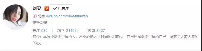 在微博简介上,她这么介绍自己:本是个微不足道的人,不小心陷入了时尚大舞台,自己还是微不足道的自己,承载了大家太多的关心。
