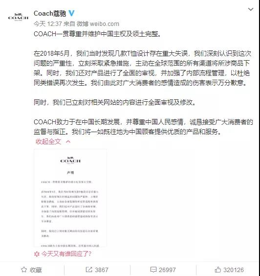 coach很快发布了道歉声明,甩出一个专供“中国人的道歉模板”,推卸责任,虚情假意道歉,等风波过了,该开的店一个都不少。