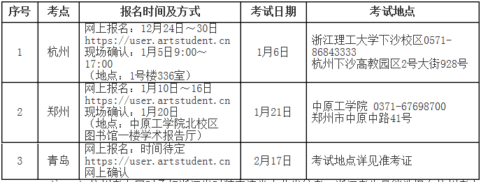注:1)杭州考点同时承担浙江省时装表演类专业省统考,浙江考生只能选择在杭州考点参加考试;