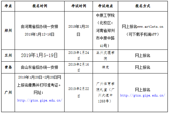 5.各考点具体报名与考试时间,请考生随时留意广州体育学院本科招生信息网的说明。