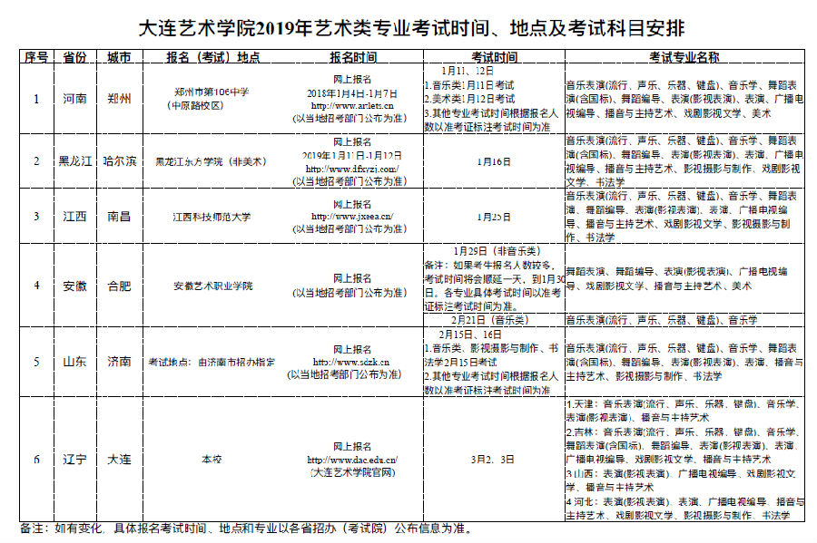 备注:音乐表演专业包含声乐演唱招考方向、乐器演奏招考方向、键盘乐器演奏招考方向、流行音乐招考方向。表演专业包含影视表演招考方向。