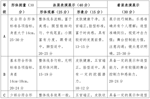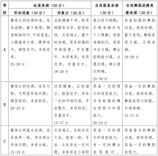 考生可着淡妆,长发考生梳马尾辫,短发考生发型需展现整个脸部轮廓,不可佩戴美瞳。泳装环节女生应选择比基尼款式泳装,并且泳装上不允许出现培训机构标示。考生不可佩戴各类饰品,高跟鞋鞋跟不可超过 10 CM。