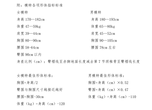 1.形体测试(测定身高、体重、三围尺寸,30 分)