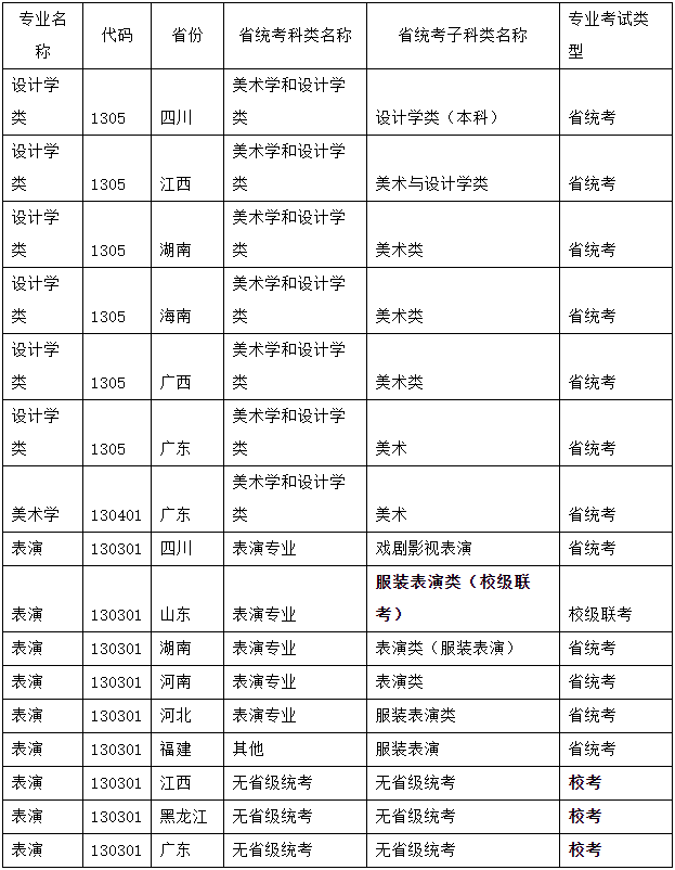 备注:有意报考我校艺术类专业的考生,须按上表指引报名、参加相应的省统考、校级联考或者我校校考;以上为初定方案,最终招生省份以各省考试院公布的2021年招生专业目录为准。