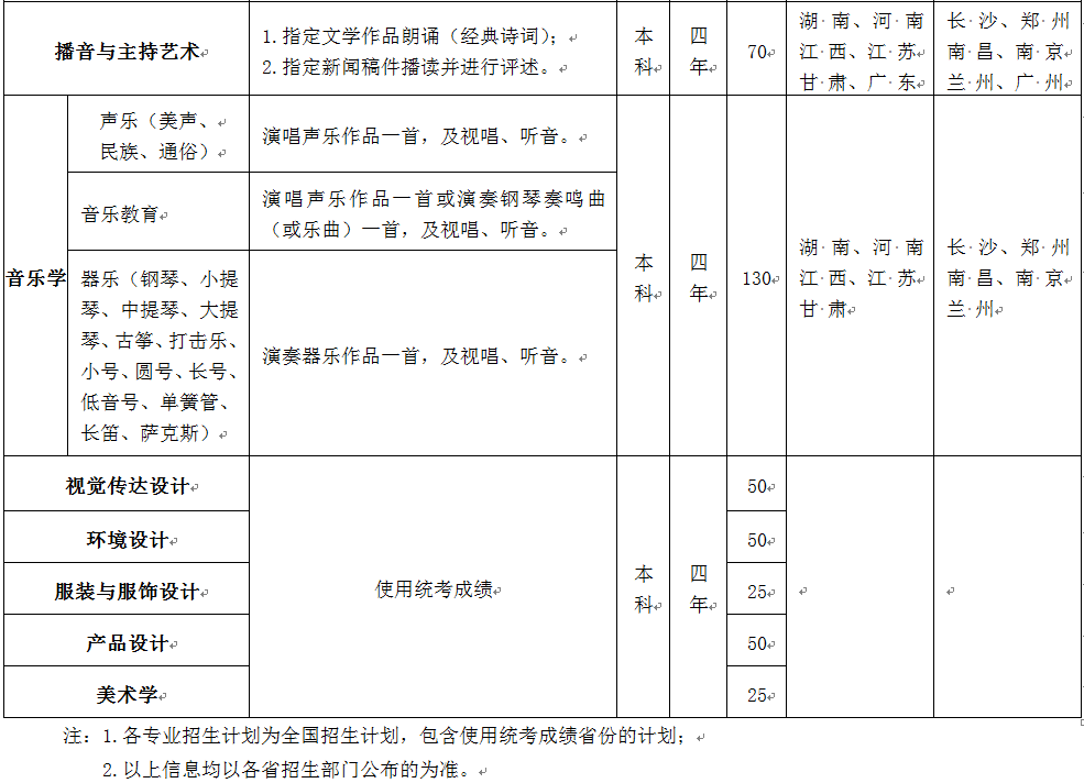 2.所有艺术类专业在规定计划投放时必须分艺术文理的省份只招收艺术文,规定计划不分艺术文理的省份则文理兼招。