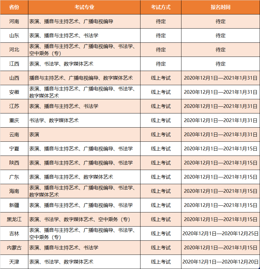 2.各省市艺术类及空乘类校考报名