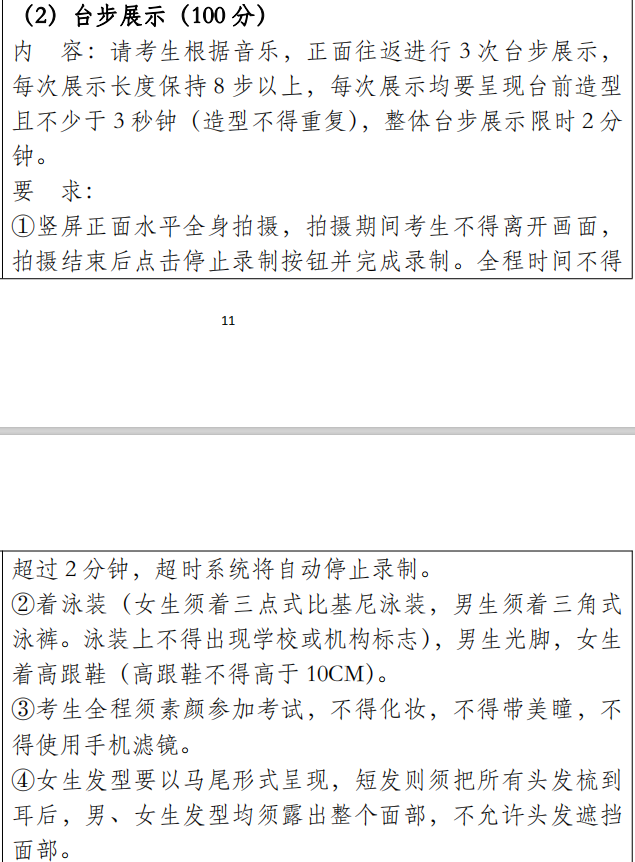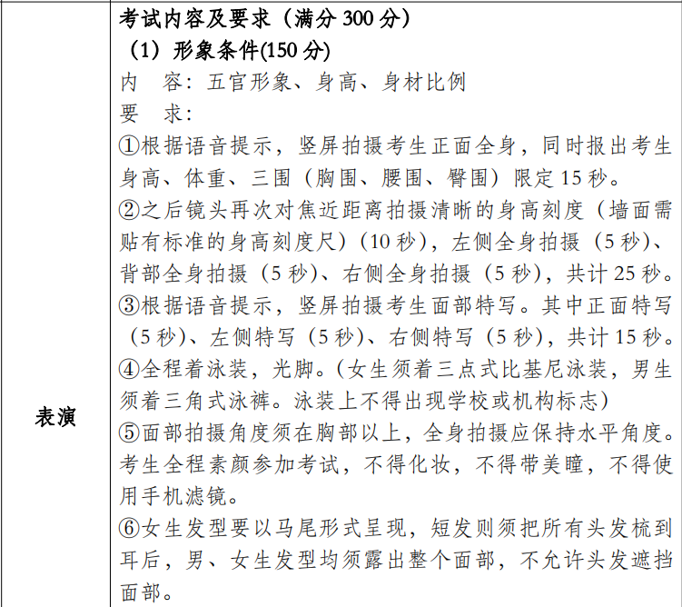 3.本科模特类专业要求考生身高:女 172cm 以上(平面模特 165cm 以上),男 185cm 以上(平面模特182cm 以上)。